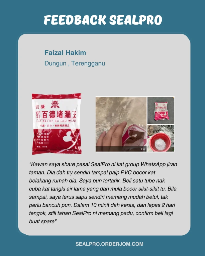 ✅ 1. Diuji & Terbukti Berkesan Lebih 5,000 unit dah terjual! Ramai pengguna berjaya tutup kebocoran, paip bocor & retakan hasil keras dan kalis air dalam masa singkat!
